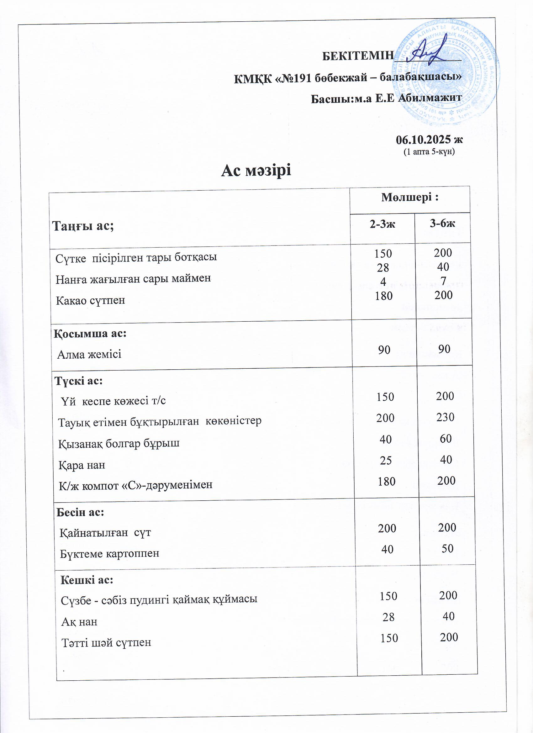 Ас мәзірі » №191 «бөбекжай-балабақшасы