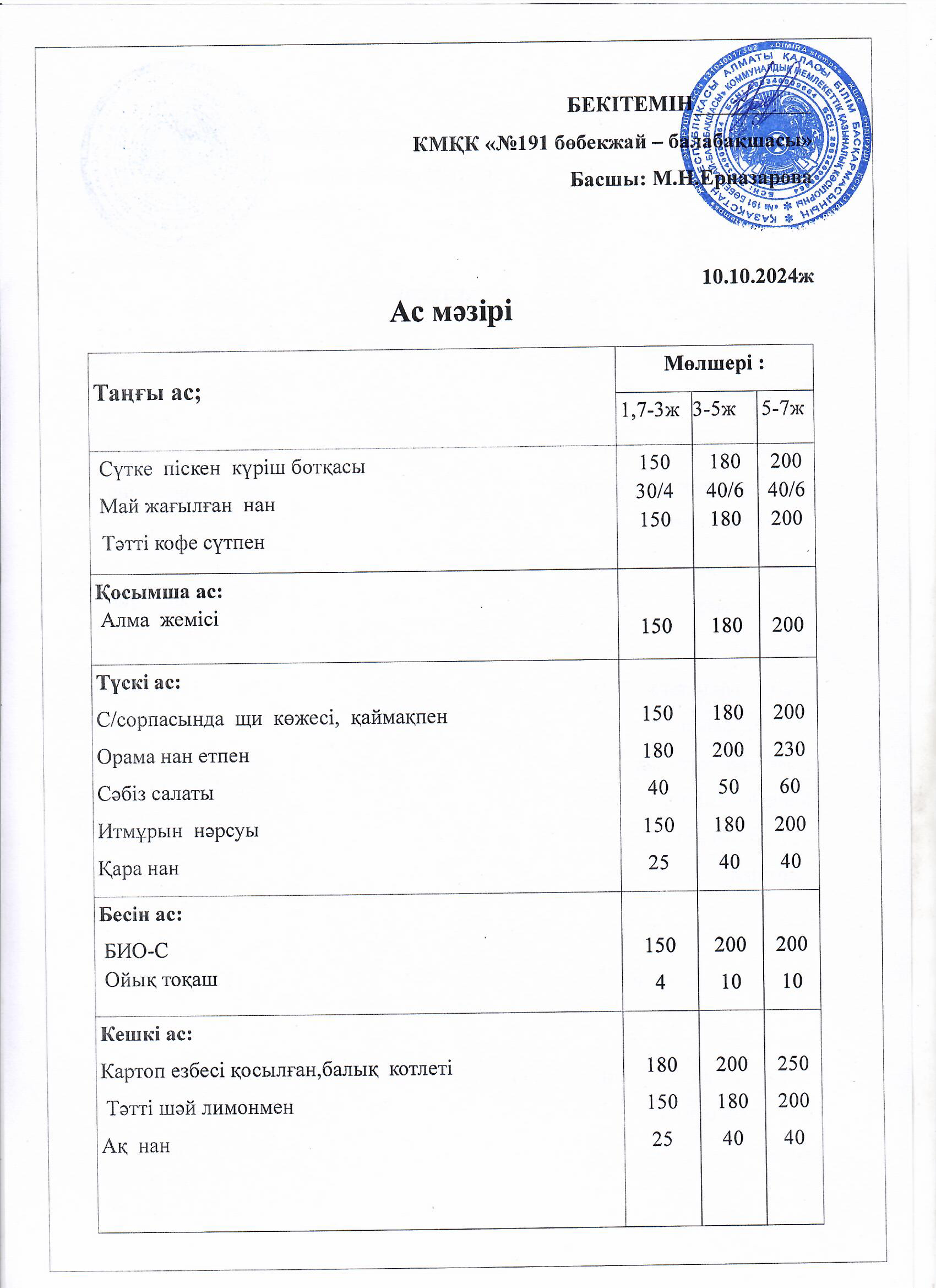 Ас мәзірі » №191 «бөбекжай-балабақшасы