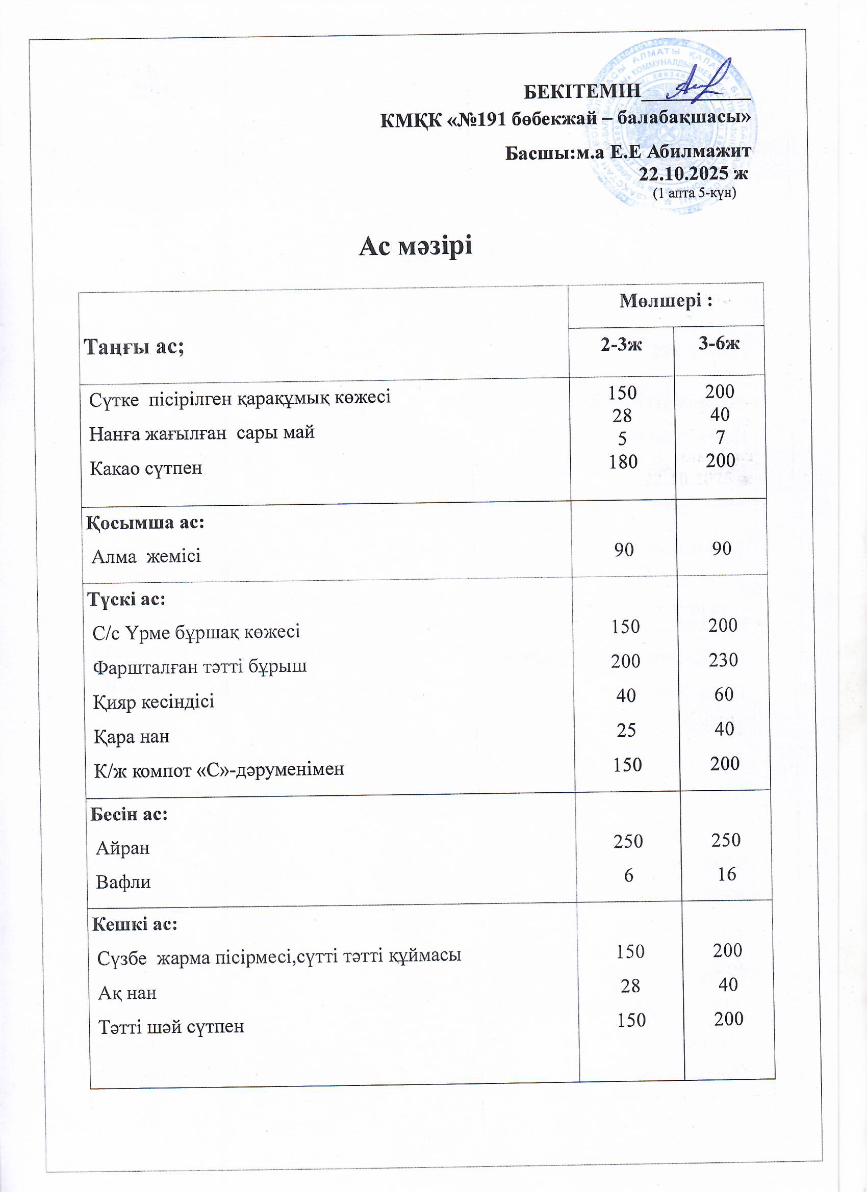 Ас мәзірі » №191 «бөбекжай-балабақшасы